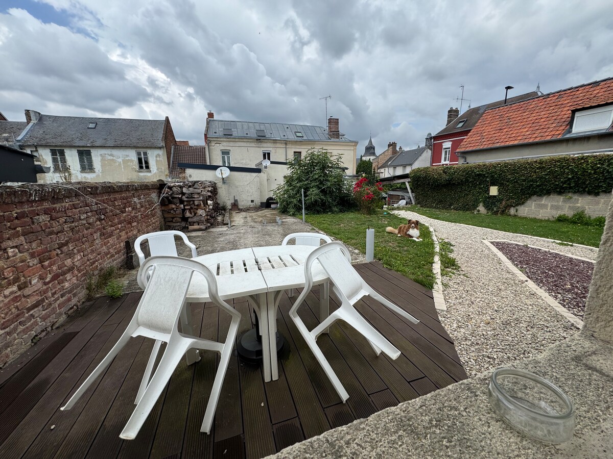 We invite you to stay in our house located in Achicourt near the citadel of Arras (5 min drive to the train station and 20 min walk to the city center). You will appreciate the quiet location minutes from town. Free parking. Bakery, butcher, tobacco press and convenience store nearby. house on 2 floors comprising 3 large bedrooms, 1 bathroom, 2 toilets, 1 furnished terrace and 1 garden. Very friendly house ideal for families or groups of friends.