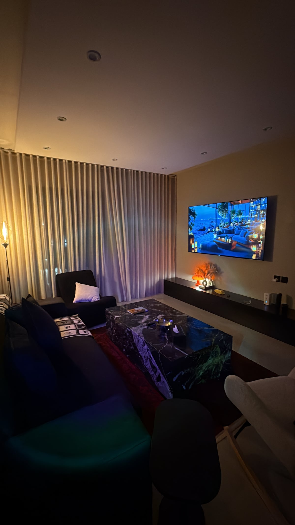 This unique place has a style all its own—designed to offer comfort, elegance, and a touch of luxury. Each room is thoughtfully furnished with chic décor and high-end finishes. Enjoy premium amenities including a Cinema VIPS experience, QLED flat-screen TVs, tea/coffee machines, hair dryers, plush towels, and a complimentary welcome pack. Whether you're here for a short getaway or a longer stay, you'll feel right at home with our modern comforts and personalized touches.