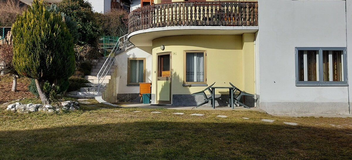 Bell' appartamento di circa 80mq situato al piano terra di una casa indipendente circondata da parco alberato di 1400 mq completamente recintato. È dotato di parcheggio privato e di un ampio terrazzo coperto con incantevole vista sulle Dolomiti. Nel giardino retrostante e' disponibile un tavolo fisso con ombrellone e sdrai per rilassarsi.