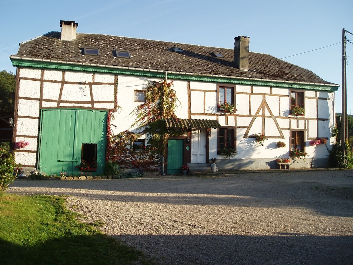 Stone house (old restored farm) with exceptional views of the valley. The house is very comfortable, well-equipped with its large comforting open fire for long winter evenings. Located in a small cul-de-sac village, very quiet and 10 meters from the woods and the start of pretty marked walks. A good breath of fresh air in the heart of nature with a multitude of activities nearby: hiking, mountain biking, Hautes Fagnes, Spa thermal baths, Golf, Francorchamps Circuit...