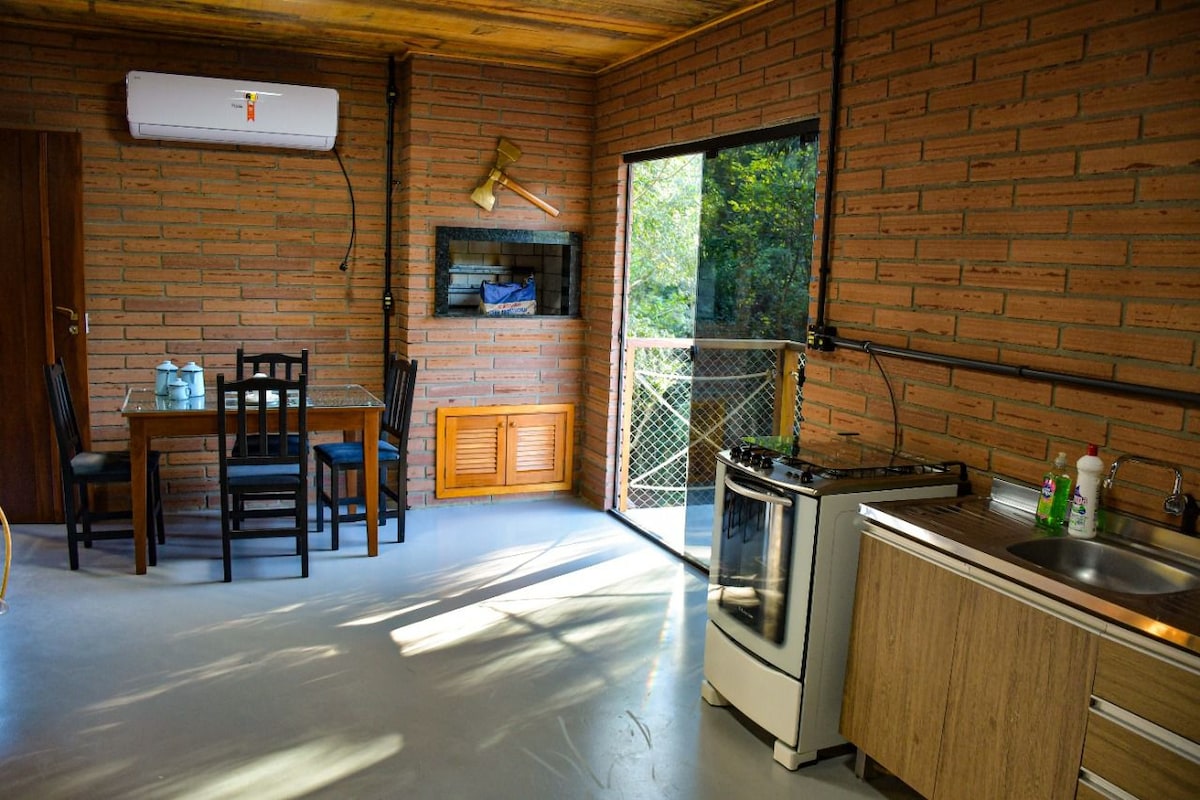 Forget your worries in this spacious and serene space, surrounded by nature. Perfect for resting, relaxing, enjoying the forests and the Arroio da Seca. It is also possible to barbecue outdoors, in the vicinity of the property. The house also offers indoor comfort, with air-conditioning in all spaces, an en-suite with a bathtub overlooking a century-old rammed-earth wall, a full kitchen, a reading space and a small library! The house is located 200 meters from another house on the property.