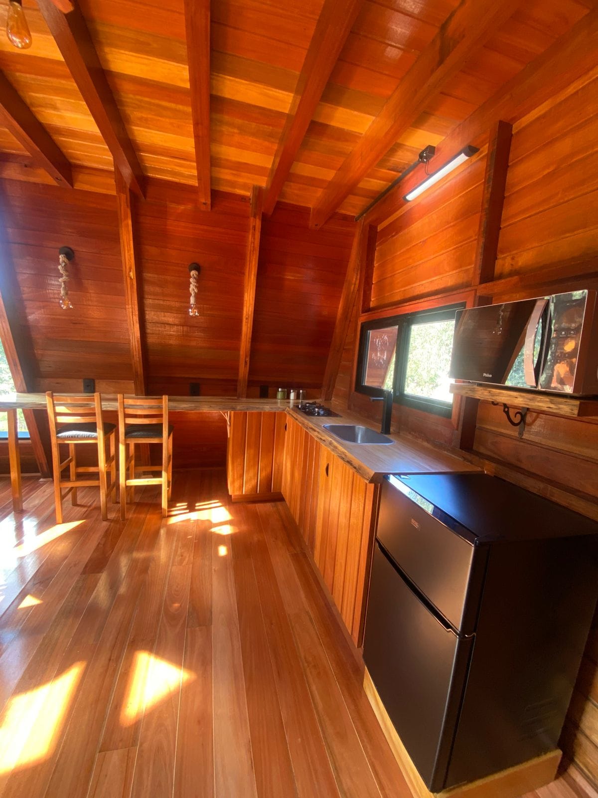 Discover the first Tiny house in Vale do Taquari, located at the top of Morro da Ventania in Arroio do Meio. Enjoy a delicious welcome coffee prepared with colonial products and an outdoor Jacuzzi with amazing views of the valley. Full kitchen for preparing meals. Cooking essentials available, as well as frozen pizzas and beverages for sale. For the kids, there is a playground and a large fenced patio for playing We are on the Route to the Christ the Protector of Encantado and Viaduct 13.