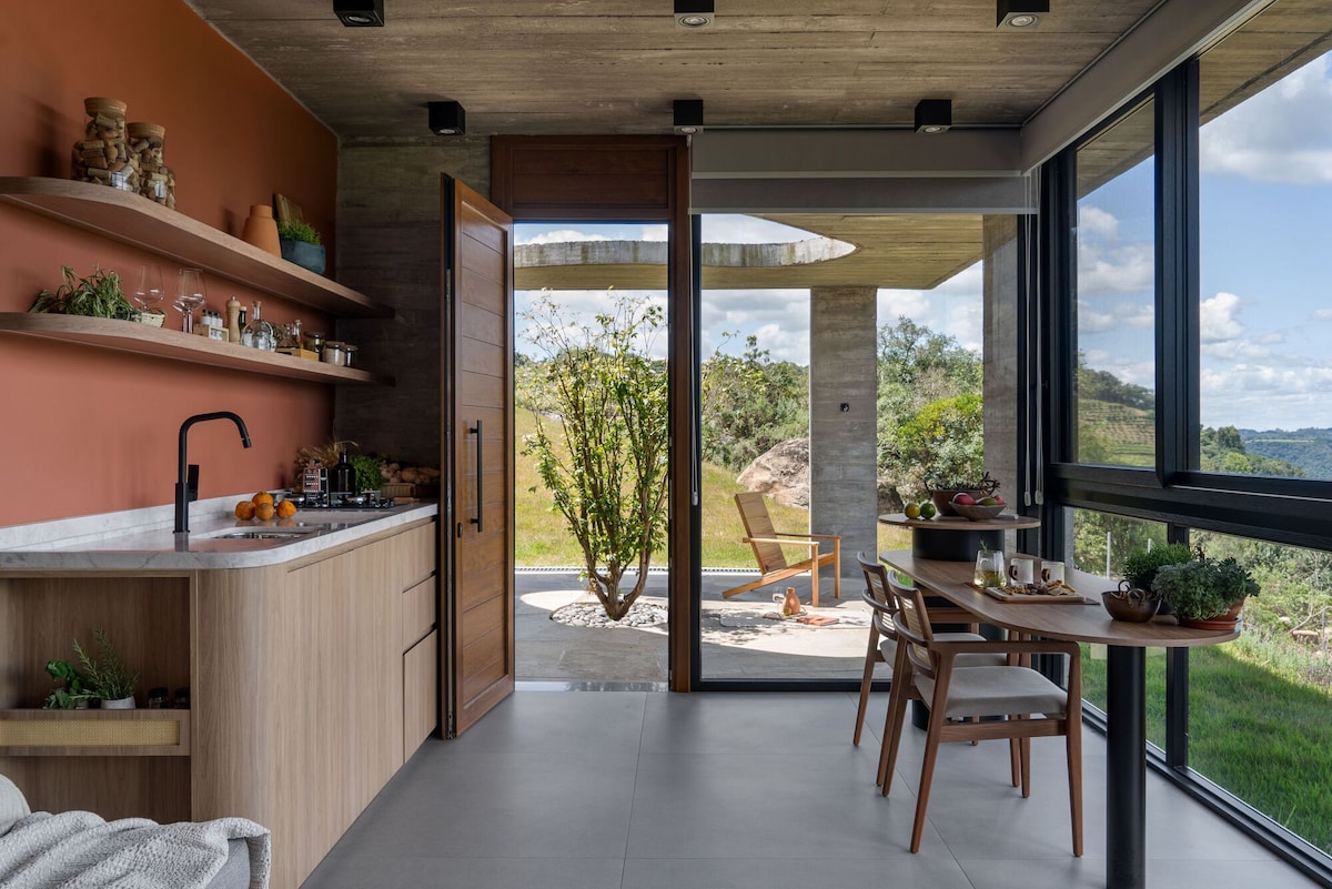 🏡 Welcome to Morada nas Nuvens! A refuge in the middle of the Pinto Bandeira mountains, designed for those seeking rest, nature and a breathtaking view. Here, we have created a cozy space with architecture that integrates with the landscape and a perfect setting to relax and contemplate every moment. 🌄 Sunrises, incredible sunsets and starry nights are part of the experience.