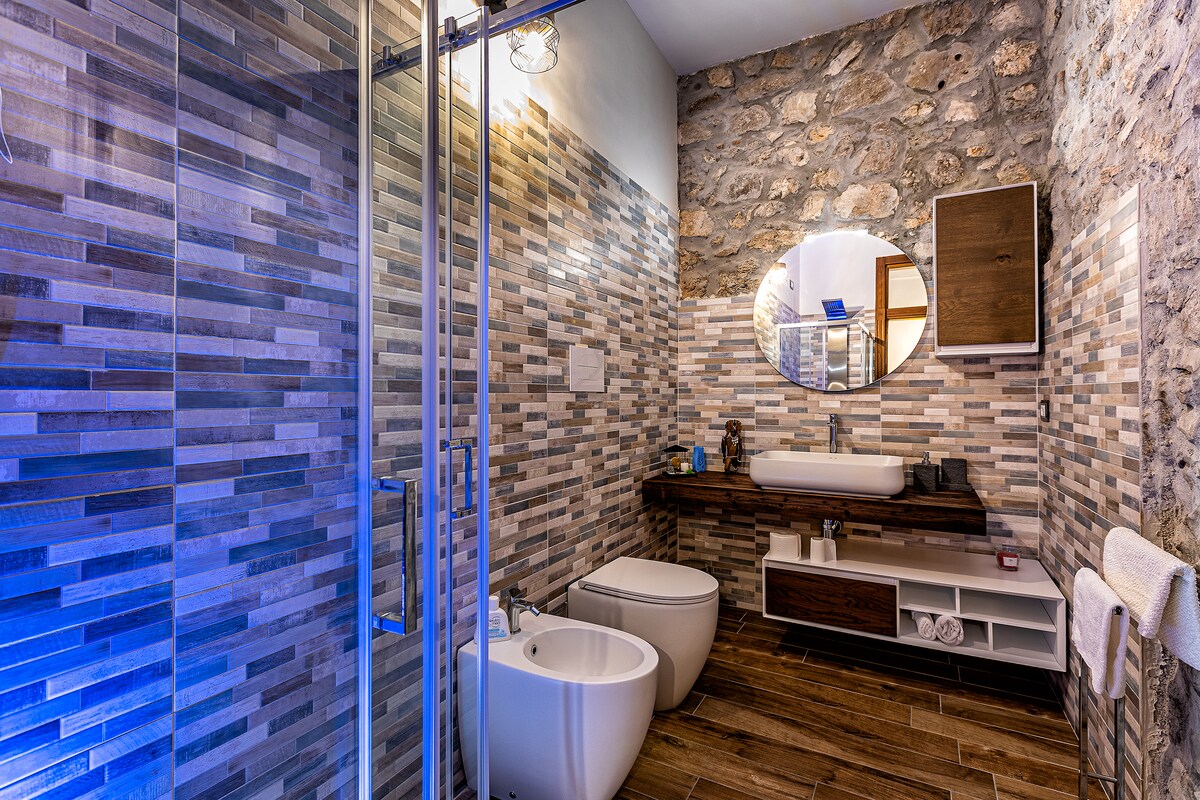 Casa Faro is a Suite of the widespread hospitality Borgo dei Saraceni in the heart of the historic center of Agropoli. The apartment is facing the sea, in the upper and most panoramic part of the town, in a very quiet area, ideal for those who want to relax by immersing themselves in the slow rhythms of the historic center but at the same time is a 5-minute walk from the center, the bars of the nightlife, restaurants and 15 minutes from the beaches.