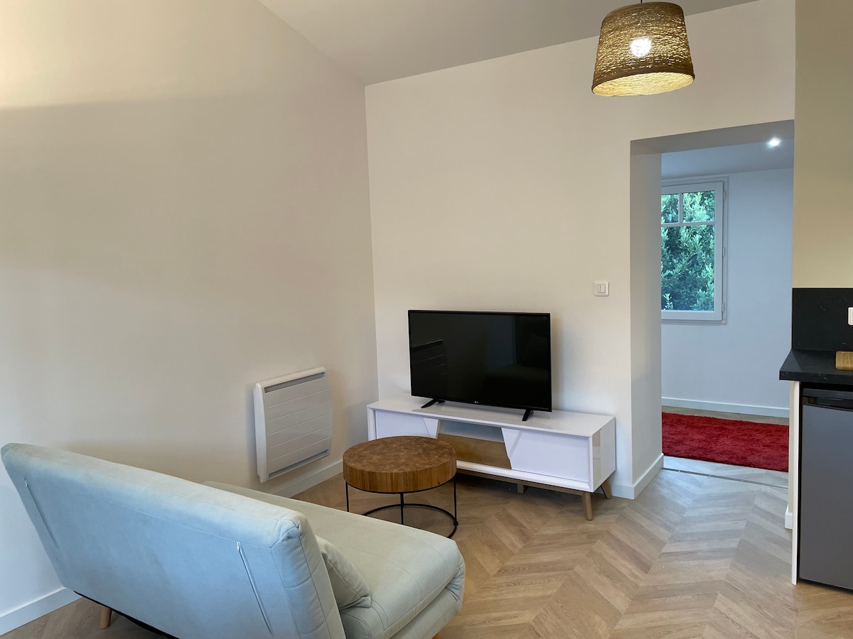 Dear spa guests and travelers, come and put your suitcases down for a few nights in this pleasant and perfectly furnished studio. Among its assets: new, well-equipped and carefully decorated, a real kitchen, a separate and warm sleeping area, quality bedding, a nice little intimate exterior... We are finally recognized superhosts with more than 450 praiseworthy reviews for other properties. Trust us! Looking forward to hosting you soon!!