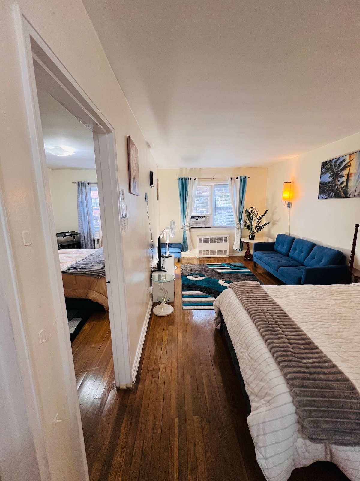 This stylish place to stay is perfect for anyone looking to get away! 3 rooms living room- Bedroom-small workout room. This spacious airbnb comes with fully stocked entertainment system, work out equipment, fire place, super fast wifi. This aribnb is located by prime locations such as 20 mins to jones & long beach, 15 minutes to nautica mile, roosevelt field mall, 10 minutes to Eisenhower Park, 5 mins to Nassau Coliseum, 20 min to USB arena + more. your bathroom is private.