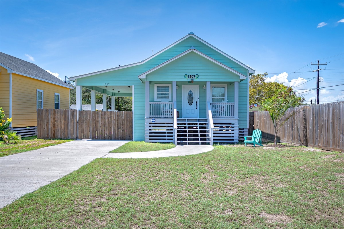 Welcome to The Coastal Mint, the cutest cottage just blocks from beautiful Rockport Beach and the Rockport Cultural Arts District! Large corner lot, fenced backyard and covered porch with comfy furniture, patio table for 4, and grill. Our renovated house offers two bedrooms to comfortably sleep 4 (1 king, 1 queen). Bathroom complete with walk-in shower. Cozy, spacious living room and stocked kitchen. Washer/dryer onsite. Parking available in driveway. Dogs are welcome. The perfect beach vibe!