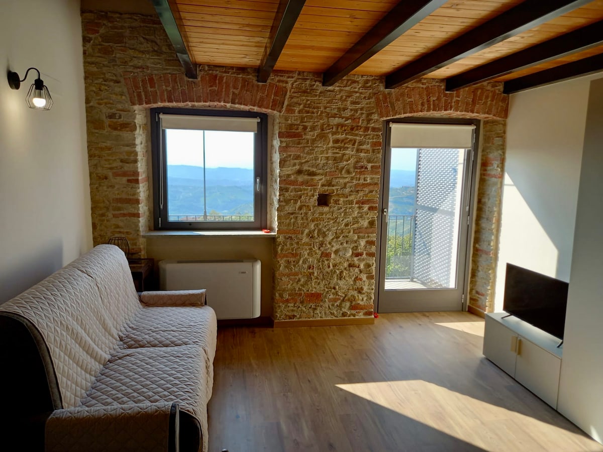 With a breathtaking view of the Langhe, the suite Piazza d'Assi is a uniquely designed apartment on the top floor of Palazzo d'Assi, a medieval building in the historic center of Monforte d'Alba. For couples, families, or friends, Piazza d'Assi is a spacious apartment with a living kitchen, a romantic double bedroom, a double bedroom plus a single bed, and a bathroom with a rustic and refined design. Covered terrace. Restaurants, bars, leisure activities within walking distance.