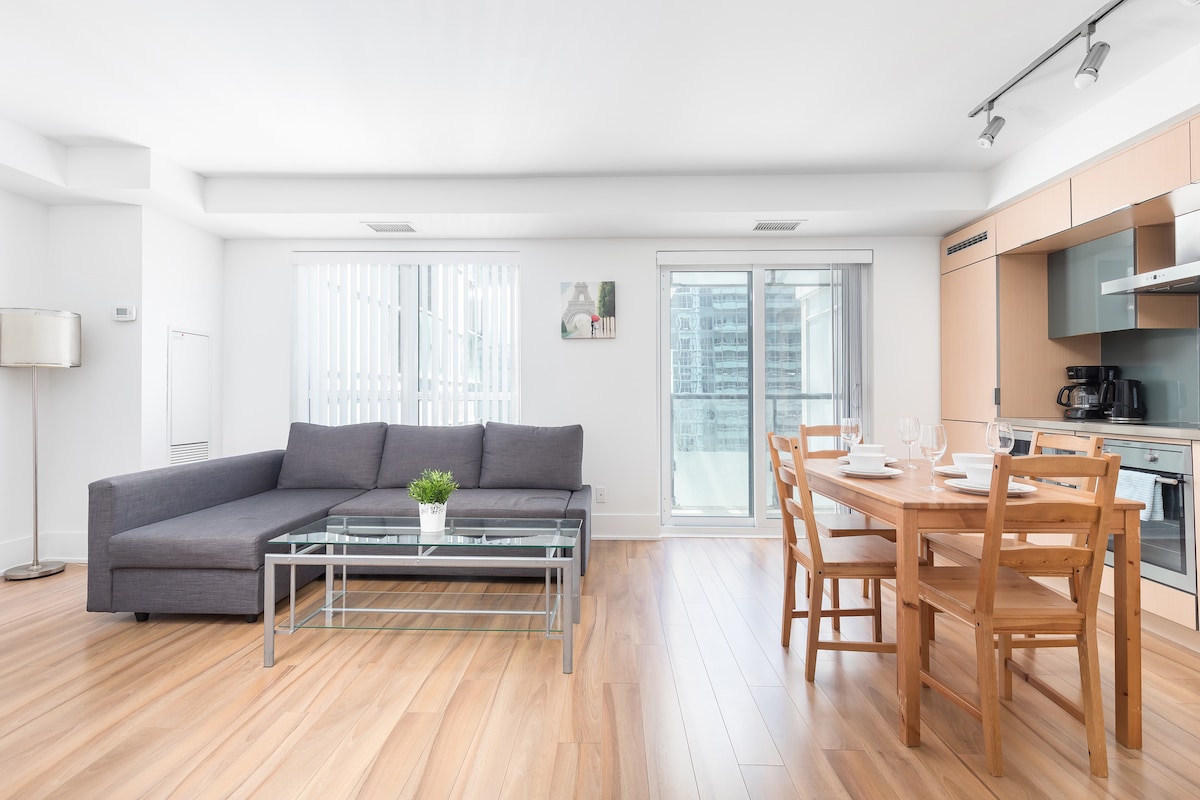 Welcome to our downtown Toronto 1BR condo with its prime location and stylish design, it's the perfect base for your Toronto adventure. Inside, modern design and tasteful decor create an inviting atmosphere in the open-concept living area. The bedroom offers a plush queen-size bed, premium linens, and ample storage for a restful stay. Steps from Toronto's top attractions, dining, shopping, and entertainment, whether you're here for business or leisure, this is the perfect urban retreat.