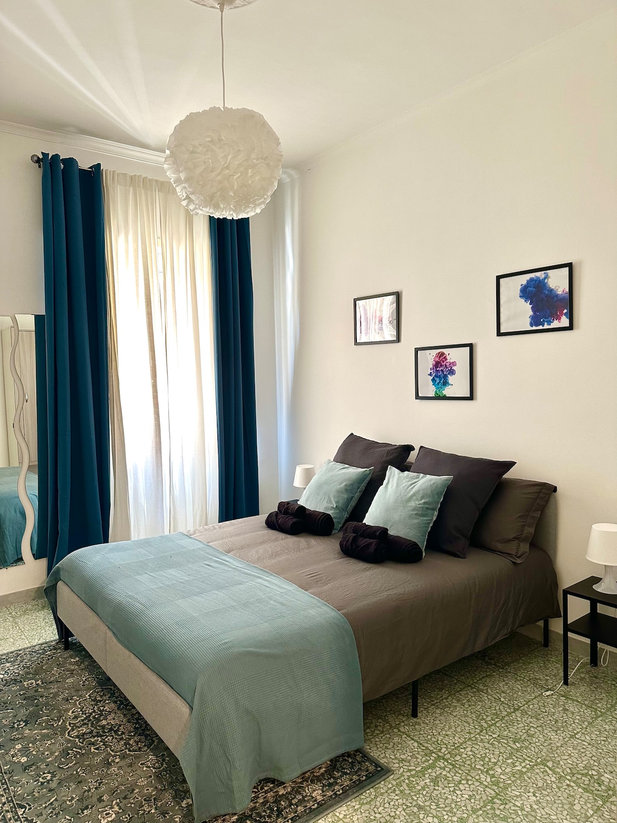 Colourful newly renovated apartment with a vibrant artistic atmosphere, only 2 minutes walking from Termini station and 5 minutes from Repubblica metro station. You will find everything you need during your stay: a fully equipped kitchen with fridge, microwave, washing machine and dish washer; a cozy bathroom with a big shower cabin; a large bedroom with a king size mattress; a sofa bed that can host 1 additional guest; air conditioning, TV and a working gramophone.