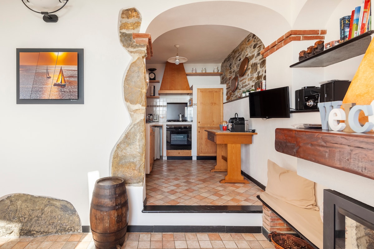 A typical country house, with stone walls and exposed wooden ceilings, it is the ideal refuge for those who want a relaxing holiday surrounded by nature, a few steps from the town center. It consists of a living room with a sofa bed, a kitchen, 2 bedrooms, a bathroom, and a large, fully fenced garden. It is an oasis of peace where you can enjoy moments of serenity and relaxation. Upon request, you can use the outdoor kitchen to organize unforgettable barbecues and cook in a spectacular wood-burning oven.