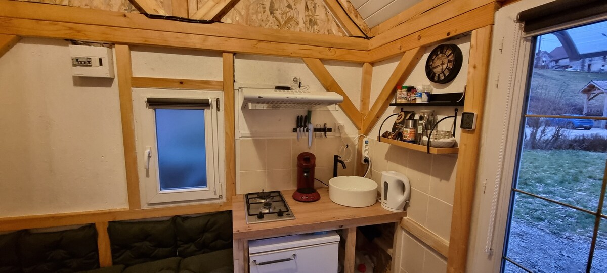 Wooden chalet rental for lovers of calm and nature at the foot of the 1000 ponds. The cottage with a small area of 20 m2 with mezzanine is equipped with: - Wood-burning stove -TV - Shower - DRY TOILET - Double bed 140 x 190 cm, pillow 60 x 60 cm and duvet 220 x 240 cm - Vaiselle - Fridge - Oven - Microwave - SENSEO coffee maker - Electric baking sheet - Cooking utensils - Towels and bed linen not provided. - Land of 15 are fenced. - Pets allowed