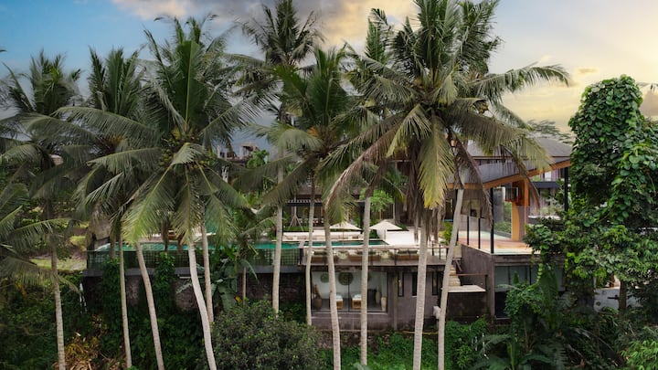 Welcome to Villa Pacifida, a huge six-bedroom sanctuary nestled in the idyllic village of Mas, Ubud, offering panoramic 180-degree views of lush rice fields and the tropical jungle with its majestic palm trees. True to its name, "Pacifida," meaning "peaceful" in Spanish, this villa promises a tranquil escape in the heart of Ubud's natural beauty.