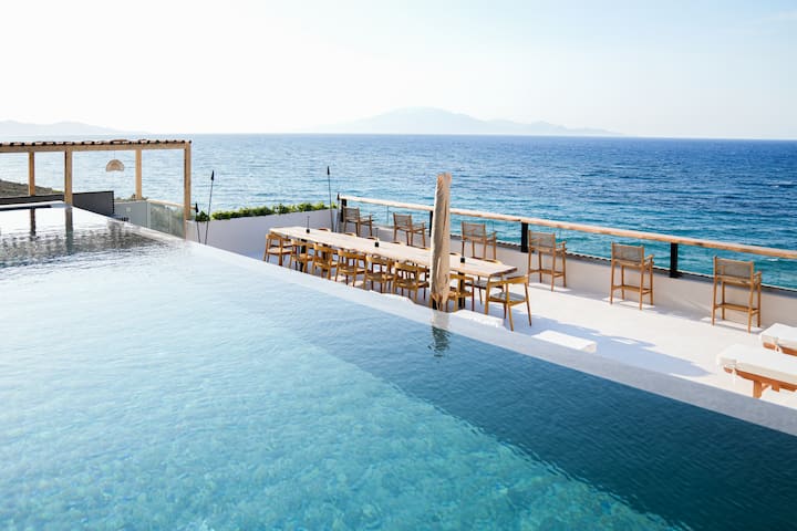 Airport Pick-up Service - Making your arrival and depart comfortable, Wifi & Internet - Stay connected seamlessly with complimentary high-speed Wi-Fi, Infinity Pool - The Infinity Pool offers stunning panoramic views, Hydromassage Pool - Pool with Hydromassage, ideal for relaxing after a day of exploring, Gym - A well-equipped gym for fitness lovers, Terrace - A Large Terrace for meals, drinking, and barbecues under the stars, a private beach just for you directly at the villa. Breakfast, Lunch & Dinner or Private Chef by Demand