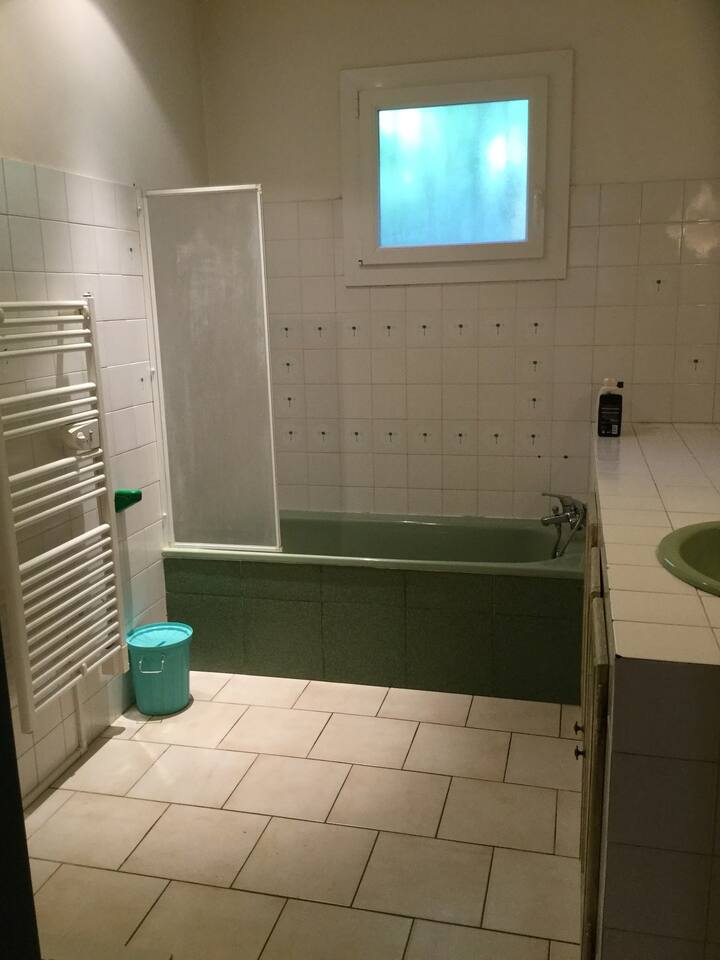 One bedroom (11.5m²) with a double bed 140 and adjoining bathroom (sink, shower and Wc).