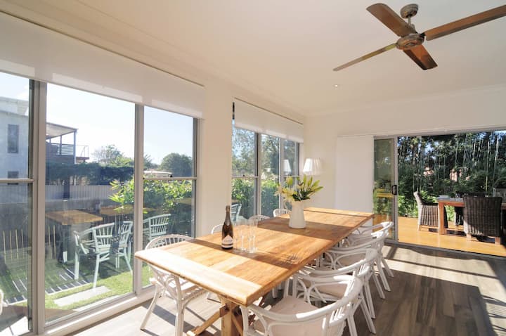 Only a short walk to the beautiful Nelson's Beach, this modern house has all that is required for the perfect beach holiday. Go for an early morning run along the White Sands track to Hyams Beach, walk your dog on Nelson's Beach, or ride a bike along the new path amongst the trees to Vincentia shops to pick up a freshly baked loaf of sourdough and a coffee.