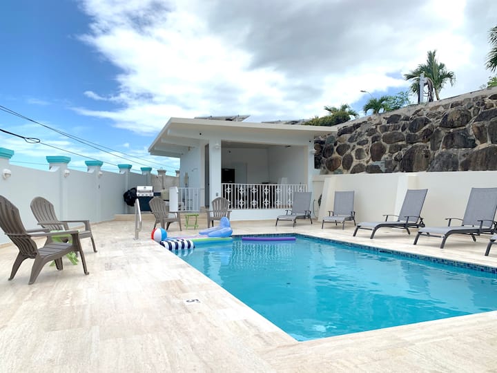 Our private, gated "Sea Breeze" home with its own pool, is located directly off of PR Road #3 on the southeast side of the island. Guests have access to the beach across the street through our Beach Bliss property, as well as pickleball, cornhole, basketball, and hiking on the 15-acre hillside of Casa Wurster where they can enjoy stunning panoramic views and even catch a glimpse of some colorful island iguanas. Experience an authentic Puerto Rican vacation away from the typical tourist areas!