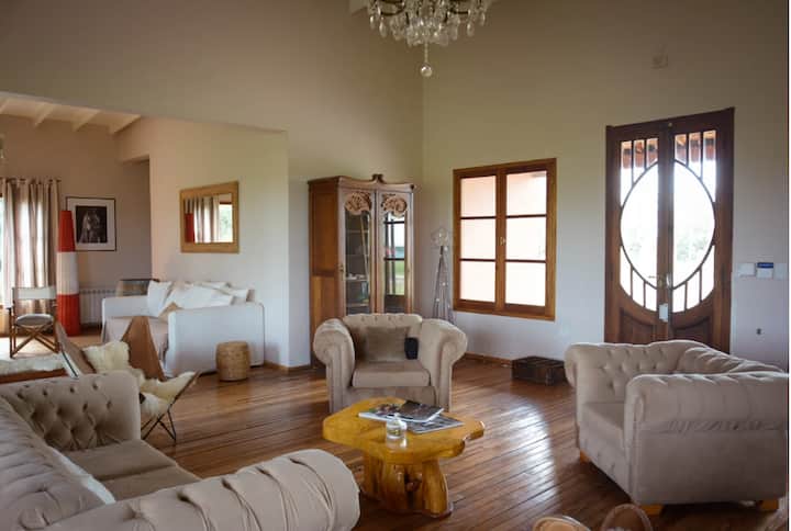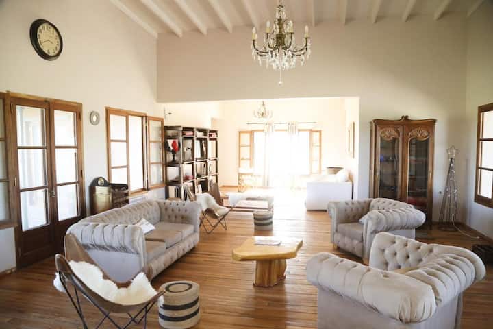 "Rancho Contento Polo House" is a Campo house inside the exclusive Club de Polo "Puesto Viejo, Estancia & Polo Club". The house is developed in 500 m2 covered, 4 bedrooms, 7 bathrooms, spacious living room, large kitchen, garage for 4 cars, security camera equipment, swimming pool and solarium, grill and mud oven, metegol, toad set, exclusive boutique cellar, 2 safe deposit boxes, laundry room and engine room. It is surrounded by beautiful gardens and retains all the details of an authentic country house from the early 20th century. Surrounded by 220 hectares of pure Argentine countryside, 6 polo fields, 2 vareo courts, 2 large stables, 3 beautiful lakes, 1 ligustrine labyrinth, clubhouse and much more. Ideal for polo lovers who want to enjoy the best polo in the world in a unique place. Cleaning service included, Breakfast included (Paid for COVID protocol), laundry service included, gardening, private security, and pool maintenance included. Extra services: Yoga classes, Polo Lessons, Equitation, Horseback Riding, Massage Service, Cheff and Parking (Ideal for corporate events, business meetings, Team Building, private gatherings and parties up to 30 people.)