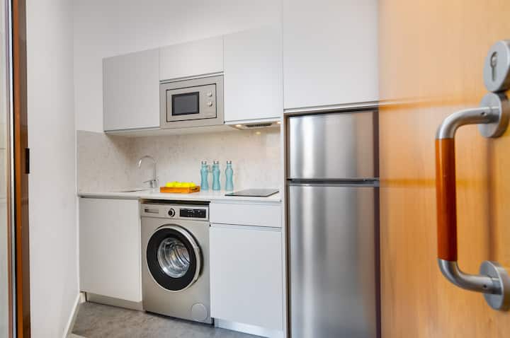 Inside the apartment you will find a very bright living room where you will feel at home. The living room has air-conditioning, a sofa bed and, best of all, a balcony, from which you can contemplate the day-to-day in Barcelona.