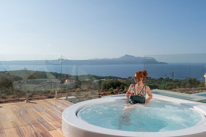 Luxury Sea View Villa w Heated Pool, Jacuzzi & Gym