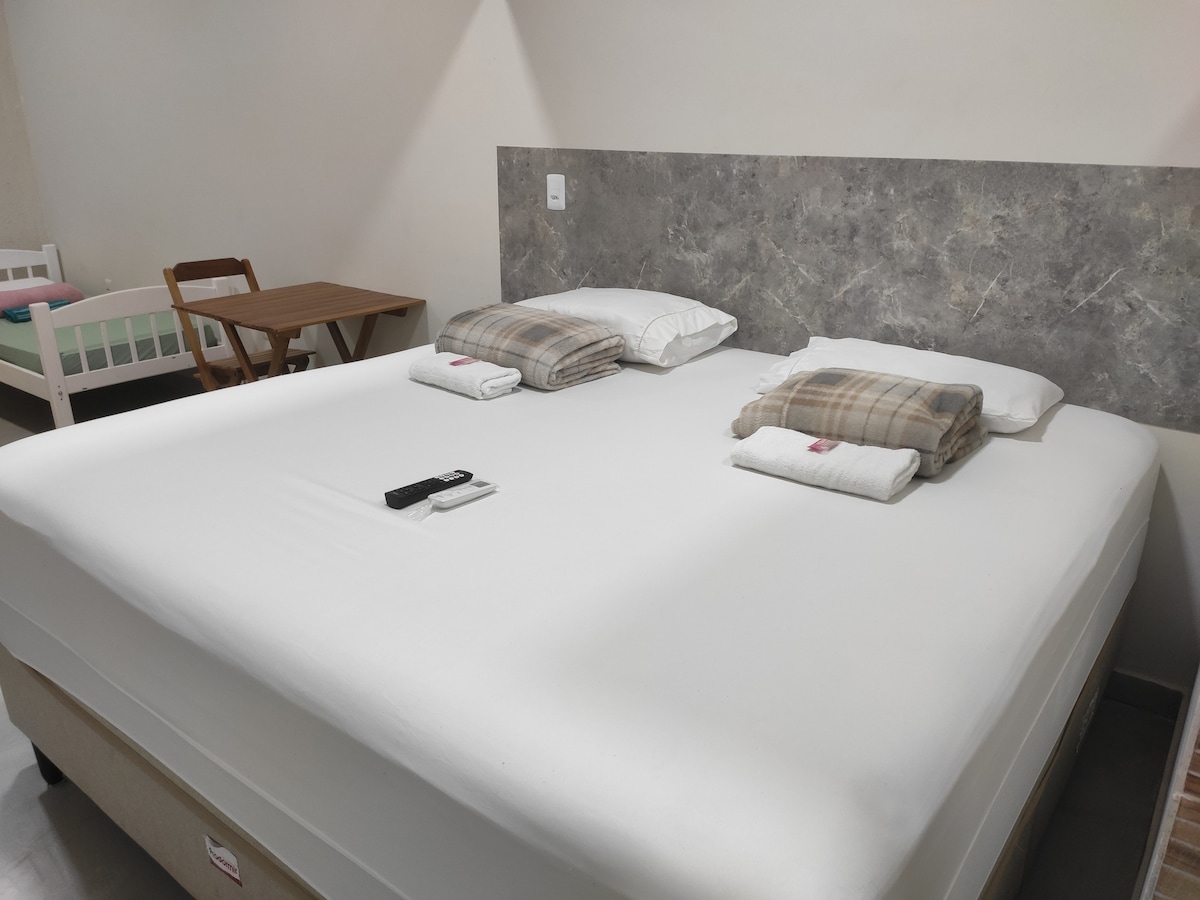 Quiet and well-located place, downtown Cacoal, complete apartment waiting for you. Close to the Banco do Brasil branch, entertainment, bars, Boteco da Bodega snack bar, Neomed clinic and other clinics, close to the city hall, municipal square, pharmacies, supermarkets and hospitals. Great location. You can do these routes on foot. Your family will be close to everything when staying with us. Welcome. We provide linens: bed, table and bath and a bathroom hygiene kit.