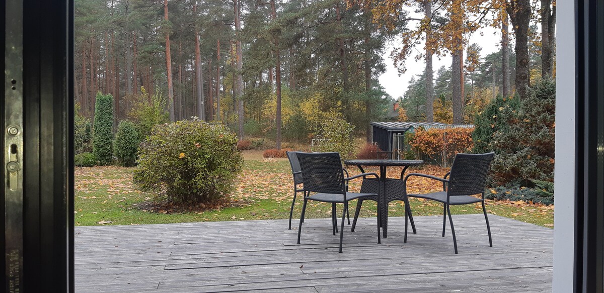 Spacious & modern wooden house is located next to the road A2 (E77) - Riga and Sigulda are 15 min away, Gaujas National Park ~ 30 min drive. All house is very well equipped and is at your service (except one room) as well as barbecue facilities outside, table tennis, berries, mushrooms, garden, fireplace, fun & more :) Usually guests are not bothered by the road, but please be aware of existing transport sounds, so this is a place in the nature with some urban touch.