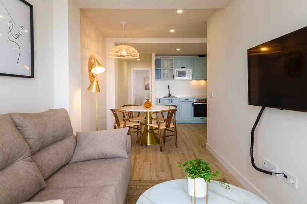 APARTAMENTO RENOVADO Se trata de un precioso espacio donde hemos cuidado hasta el mas mínimo detalle para hacer sentir a nuestros huéspedes como en casa. La vivienda esta equipada con todo lo necesario para disfrutar de unas relajadas vacaciones. Se encuentra detrás de la playa y paseo, junto a los sitios de ocio. Además cuenta con dos piscinas para niños y adultos, zonas comunes, patio exterior y una amplia terraza para cenar.