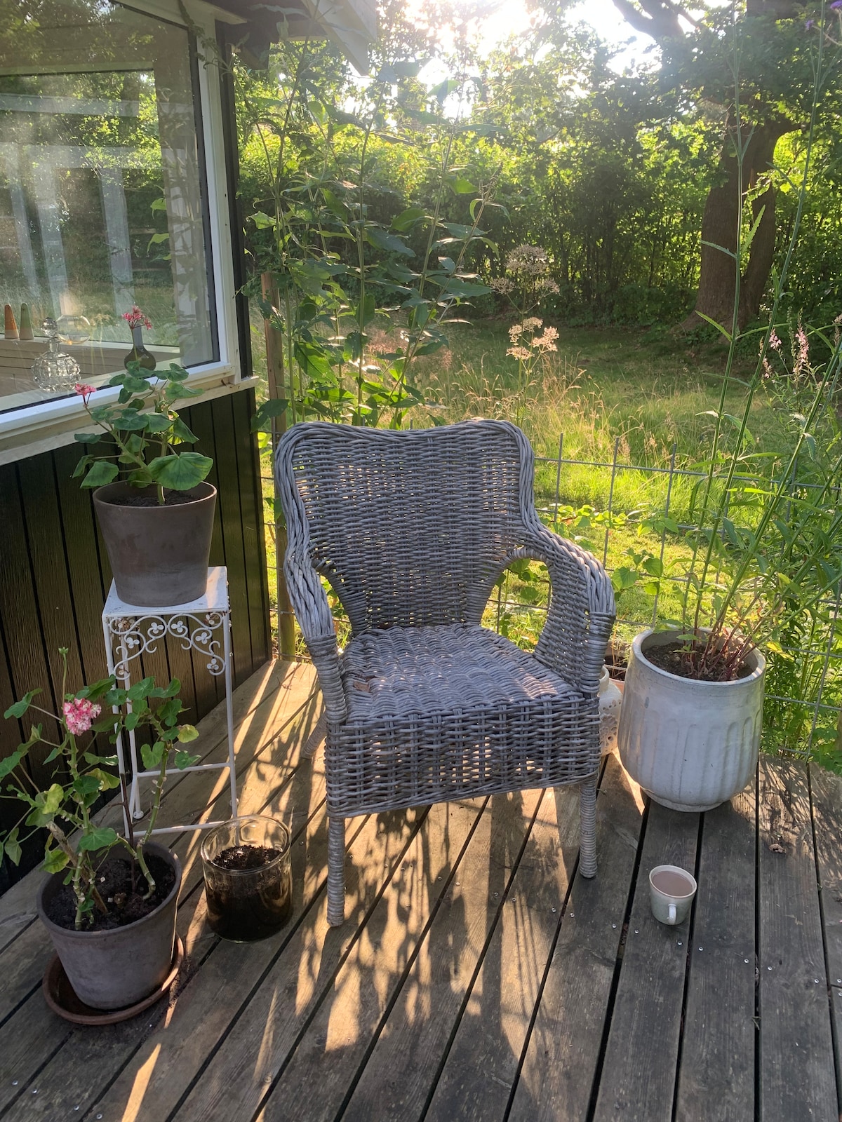In Korshage's beautiful and wild nature, you will find our summer house. It's almost 100 years old, a bit small, maybe a bit basic, but very cozy. It's in the woods, close to the water. We love the place, the trees, the birds' singing, a walk by the sea and so much more. And we hope you will too. Rørvig harbor, city and restaurants are only 3 km or a good walk or bike ride away.