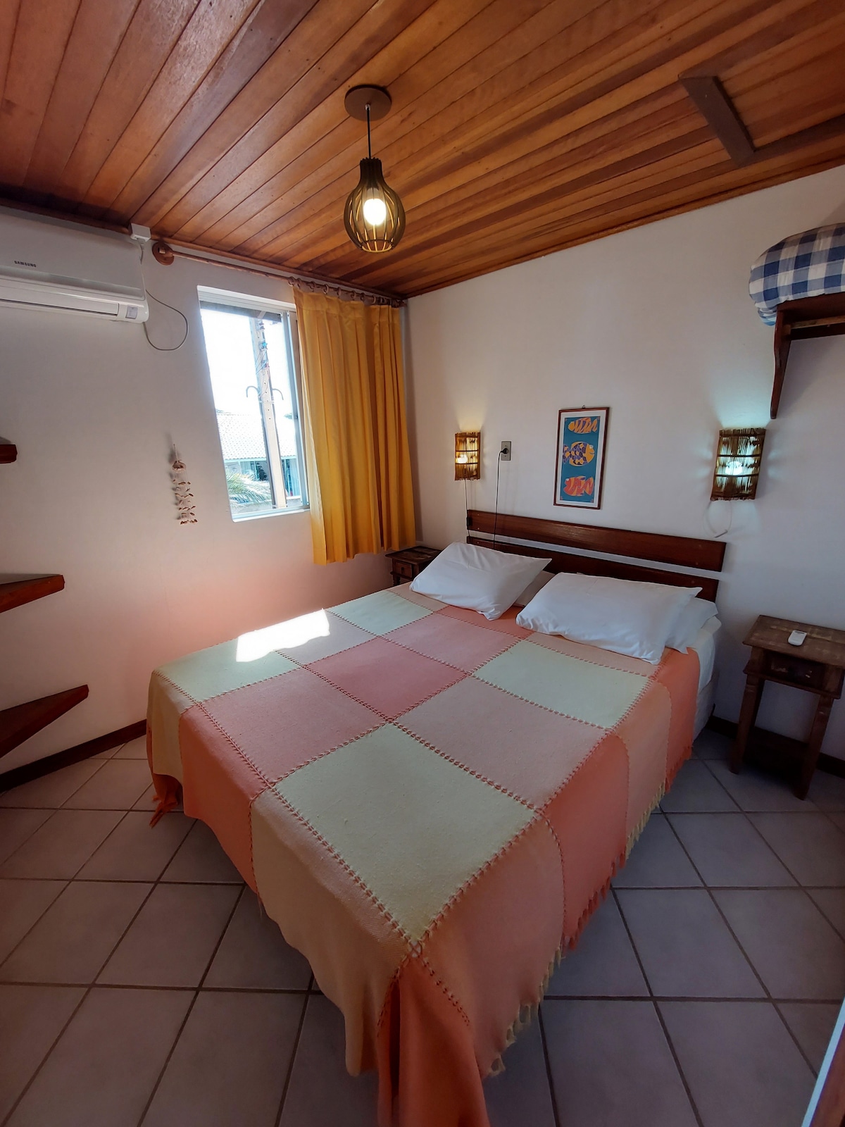 ✨ Cozy suite with balcony and hammock, overlooking the backyard and, in the background, the Ibiraquera Lagoon. 🛏️ 1 Queen + 1 Single Bed | 📺 43'' Smart TV | 🛁 Private Bathroom 🌿 Ideal for families or small groups 📍 Close to the center of Ibiraquera and ~2 km from Praia do Rosa 🍳 Access to the gazebo with a full shared kitchen — perfect for preparing meals and enjoying unforgettable family moments!