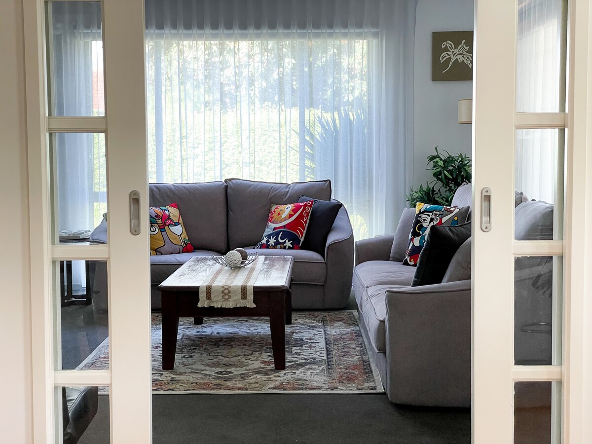 We offer a modern, private, two bedroom guesthouse to accommodate 4 guests. The Guesthouse is attached to the rear of our property. It is safe, private, and unique. You'll be close to some of the best wineries, restaurants, cafes, the famous Peninsula Hot Springs, and Alba Springs, as we are situated in the heart of the Peninsula. STRICTLY - NO PARTIES - NO SCHOOLIES