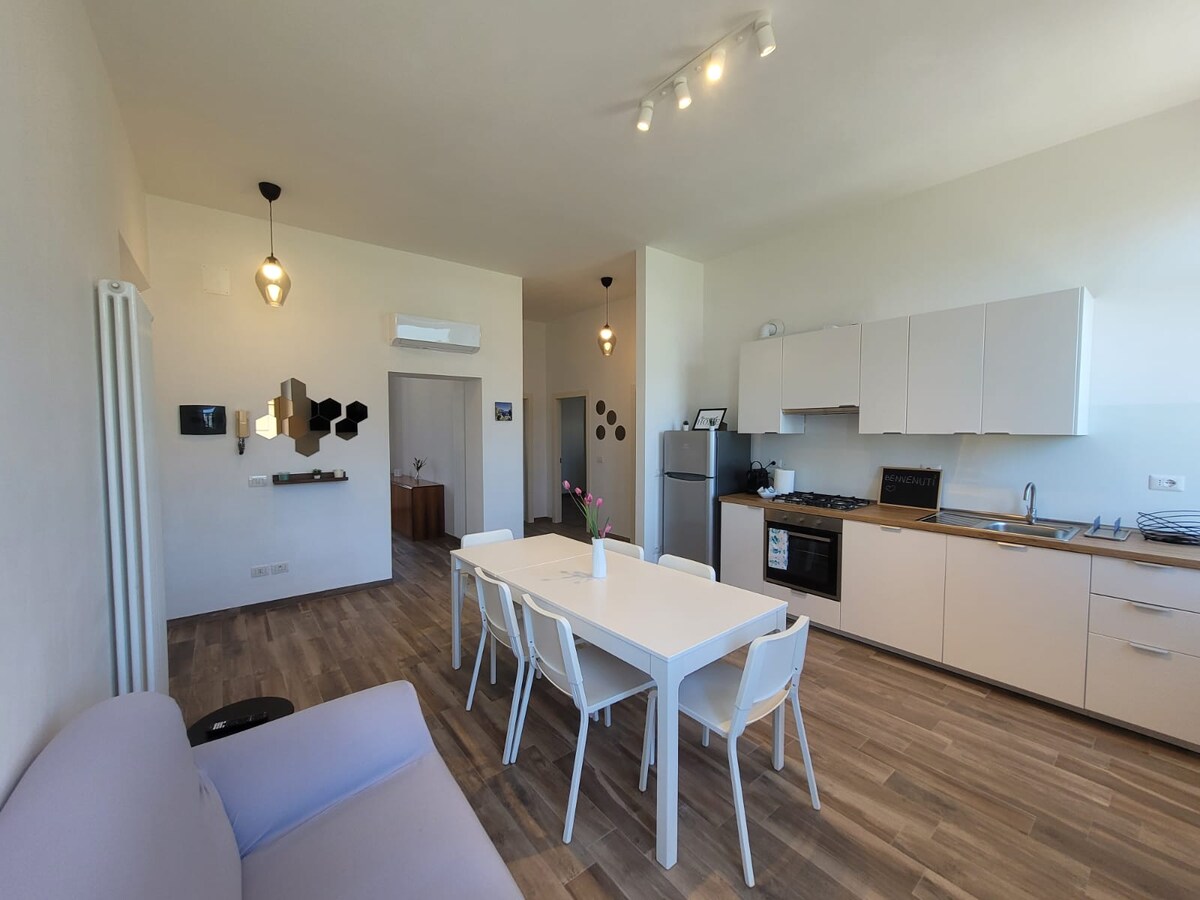Enjoy a wonderful stay with a sea view. The comfortable and quiet flat is located few minutes from the seafront promenade, easily accessible on foot or by bicycle, and is close to supermarkets, sports centres and restaurants. Ideal for families, couples or business trips! Enjoy lunches and dinners on the terrace caressed by the sea breeze and why not, have a great breakfast in the company of a beautiful sunrise.