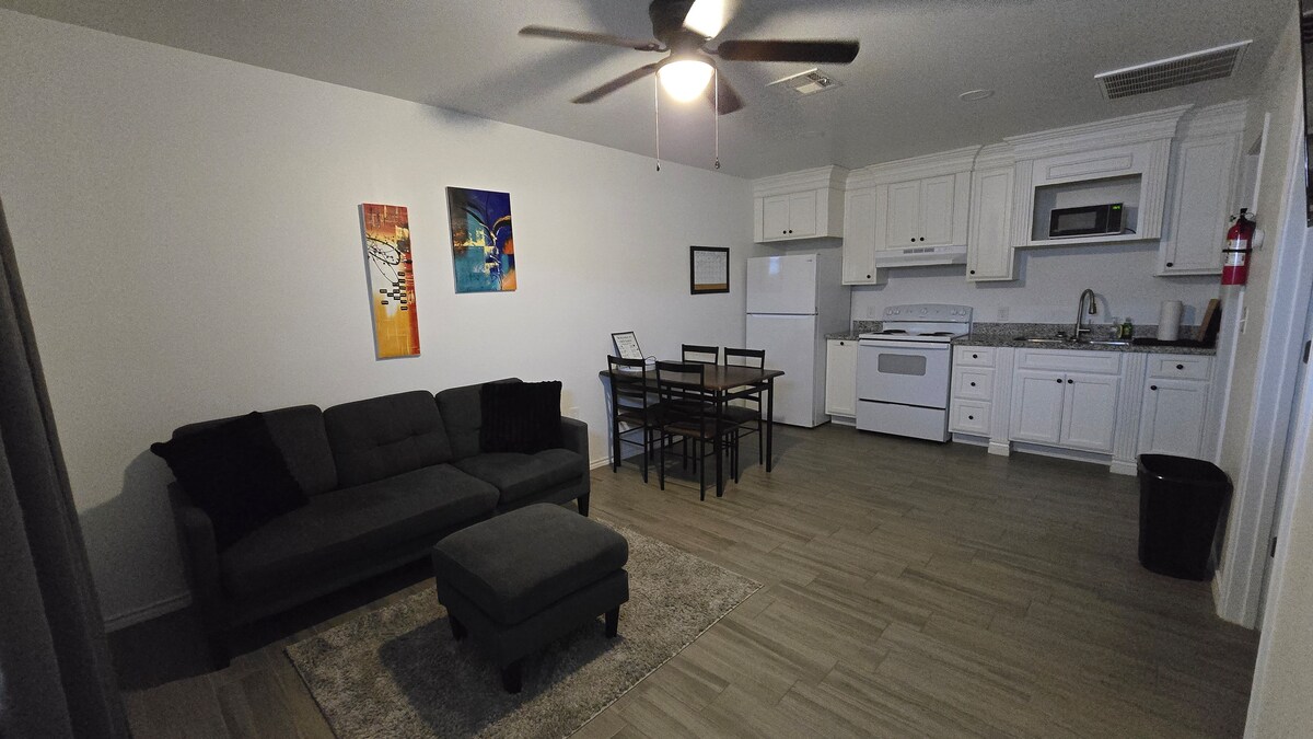 Kick back and relax in this calm, stylish studio. A brand new construction with an open concept layout with high ceilings and natural sunlight make it feel spacious and comfortable. A complete kitchen and laundry area with brand new appliances makes it even more enticing. Highlight of studio is its spacious ceramic tile shower with seating area. Studio is rested in a privately fenced property and includes a small front porch and a modest backyard for evening relaxation.