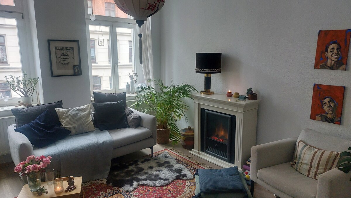 Cozy sunny apartment with fireplace