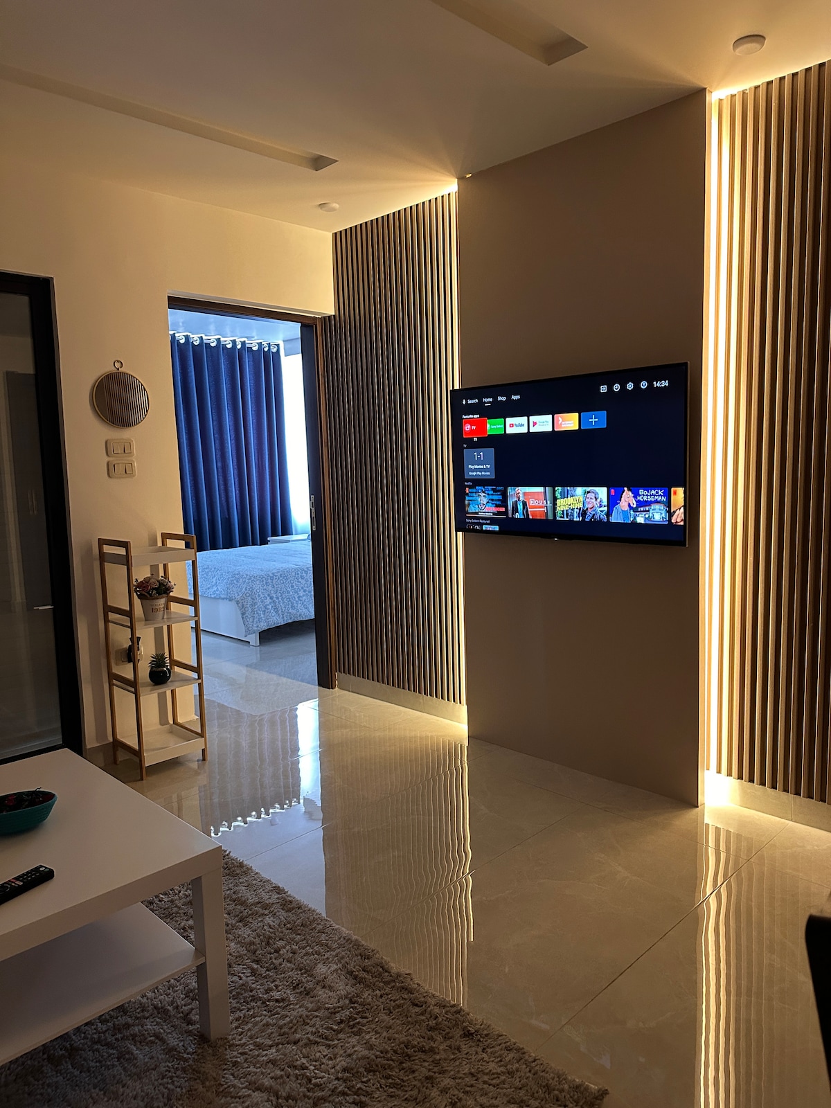 Welcome to our modern, fully automated apartment in the heart of Amman. With a calming color palette, Alexa integration, and a prime location, our urban sanctuary offers comfort and convenience. Enjoy easy access to local attractions, cafes, and amenities in a well-serviced area. Our fully equipped space provides a tranquil retreat for business or leisure travelers seeking a stylish home away from home.
