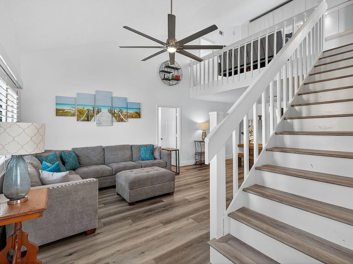 Experience the best of coastal living at this Juno Beach vacation rental, just 60 seconds from the sand. This spacious upstairs 3BR, 2BA beach condo features designer decor, two living areas, a modern kitchen, and a covered porch perfect for morning coffee or evening breezes. Walk to Pelican Lake, bike to Juno Beach Pier, and enjoy easy access to local dining, shopping, and golf. Ideal for families, couples, corporate travelers, or sports teams seeking comfort, space, and an unbeatable location.