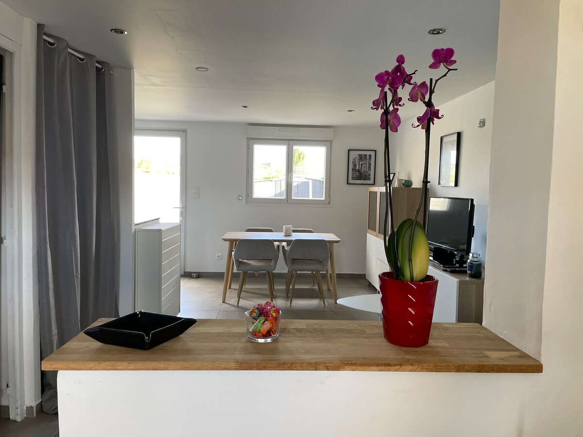 Maison de ville avec terrasse et jardin, située à 10 mn à pied du centre ville, à proximité d'un parc arboré. Maison confortable et idéale pour les familles, mais aussi les voyageurs ... RDC : Salon avec TV et WIFI Salle à manger ouverte sur cuisine équipée . SDB (serviettes fournies) Etage : 1 chambre lit double 1 chambre 2 lits simples sur mezzanine séparée par un rideau. Escalier assez raide pour accéder à l'étage. Lits faits à l'arrivée