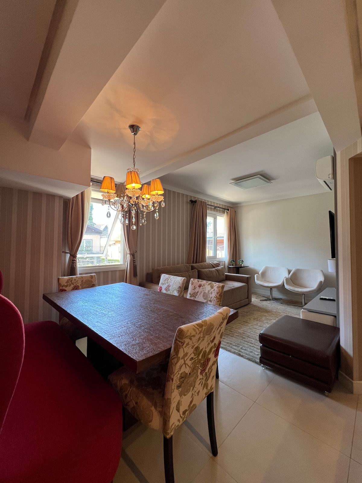 This elegant, high-end apartment is in the heart of Gramado, next to the São Pedro Church, one of the city's postcards! With 90m², spacious accommodations and sophisticated decor, it offers 2 bedrooms, hot/cold air-conditioning in all rooms, a barbecue grill and large windows that guarantee excellent lighting. In addition, it has a covered and private parking space. A complete space for your family to enjoy Gramado with comfort and practicality!