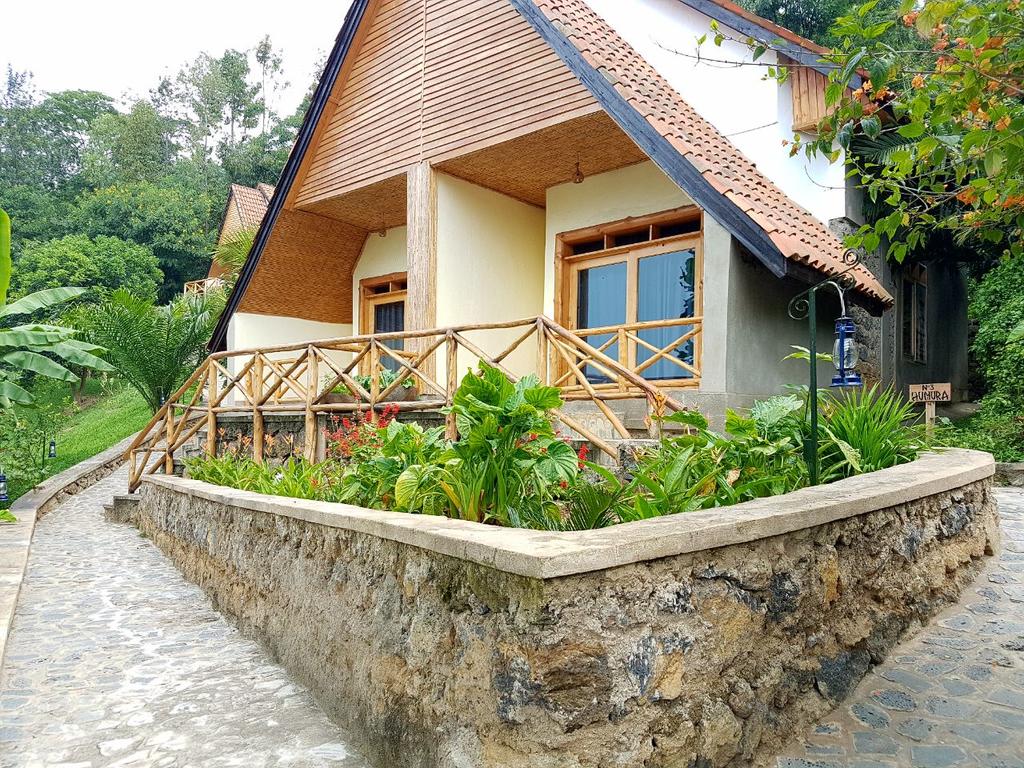 Beautiful, serene place on the water at lake Kivu. Beautiful gardens and superb views of lake, volcanoes and mountain. This Luxury Resort is located in untouched Nature.