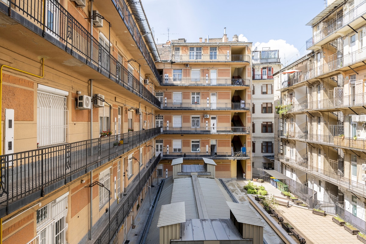 The accommodation includes one bed room with queen size bed, and a very spacy living room with open kitchen and dinning table. The bathroom is large and pampering. The flat is full with light, is airy and has a great atmosphere. You will have a high-speed WI-FI in the flat and also LAN connection. The entire flat is offered for use including Nespreso coffee-maker, oven, fridge and micro. We offer our guests to enjoy our organic hand made soaps. You will have a high-speed WI-FI in the flat and also LAN connection. The entire flat is offered for use including Nespreso coffee-maker, oven, fridge and micro. The flat is located in the fifth district, in the heart of downtown Budapest. The neighborhood is lively and restaurants, cafes, and ruin bars are all around. The street is very close to the famous Dohany synagogue and Vaci shopping street. Getting around couldn't be easier from this flat. You can either walk around to the famous city center highlights or use any of the excellent public transportation; bus, metro or tram. The flat is 50-200 meters distance from bus, tram and metro stations. The flat is located in the second floor of an historical building that was designed by the same famous architect of the opera house. The flat is modern but the building is not renovated and has NO LIFT, similar to many of Budapest's downtown buildings that bring together past and present, old and new.