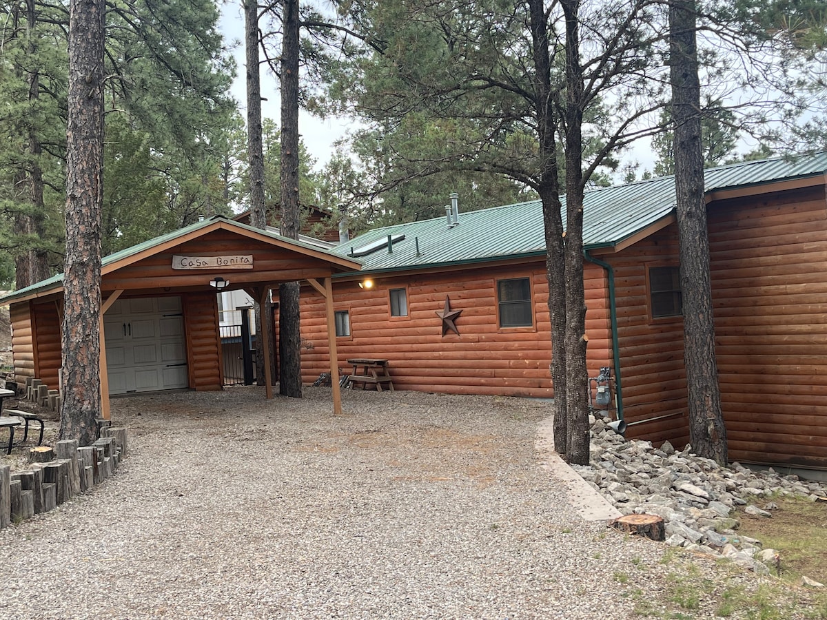 Bring friends or family to this rustic & charming cabin with lots of space. This updated cabin has all the amenities you will need during your stay. “Casa Bonita” feels cozy but is the perfect retreat for some rest & relaxation. This single level cabin sleeps up to 4 comfortably & consists of 2 bedrooms & 2 bathrooms. This cabin has a double deck for enjoying the outdoors. This cabin includes a hot tub on the lower deck to truly relax & enjoy the mountain air. This cabin is minutes from town!