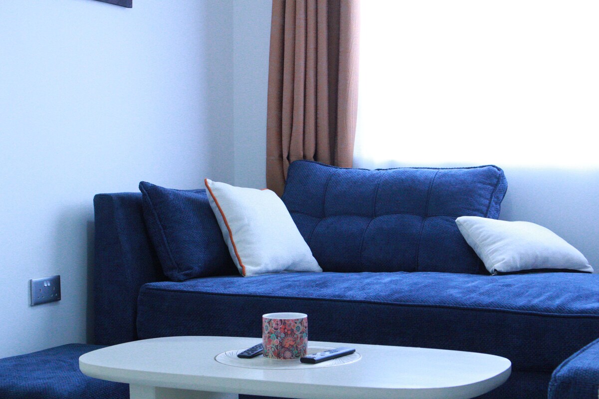This is a well equipped and basic flat with amenities well suited to visitors to KEMU ,Meru University,MIBS , with high Speed Internet, smart TV , comfortable and spacious seating area with a well equipped kitchen.