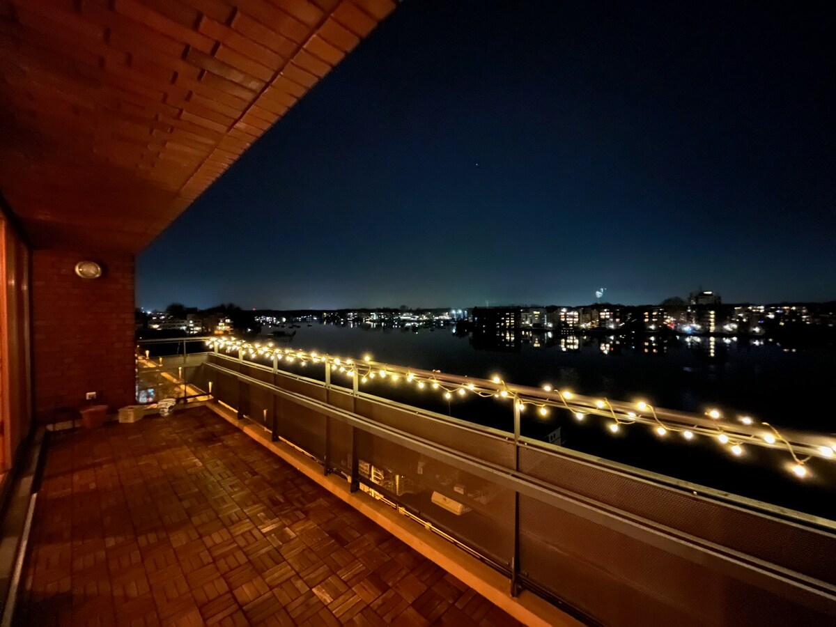 Wunderschöne, helle Eigentumswohnung über zwei Etagen, direkt am Wasser (110 m²) mit zwei Schlafzimmern. Zwei große Terrassen bieten einen schönen Blick auf die Rummelsburger Bucht und die Lichter der Stadt. Zusätzlich zum Wohnzimmer gibt es einen zweiten großzügigen Wohnbereich/Schlafzimmer in der oberen Etage, umgeben von drei Glasfronten. Ruhig an der Uferpromenade gelegen, aber dennoch zentral: Bars, Restaurants und Cafés am Ostkreuz sind nur wenige Minuten entfernt.