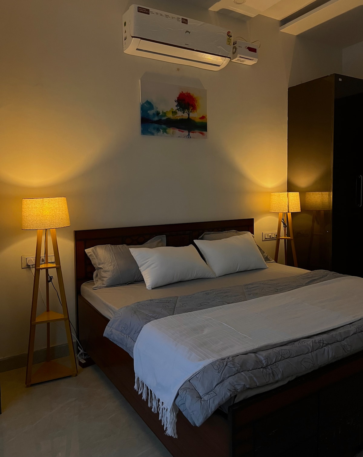 This stylish place to stay near airport with wifi is perfect for families / group stays. Stylish Rooms : *Warm light side lamps *TV *Soft bedside Rugs *Attached wardrobe and bathroom *Bed sheet and blanket *Extra pillows *Towels and toiletries *Air conditioning *Electric geyser in bathroom Fully Equipped Kitchen : *Basic cooking essentials *Required Crockery *Microwave *Electric kettle *Gas stove *Chimney *Filtered water *Refrigerator ❌NO LOUD MUSIC ❌