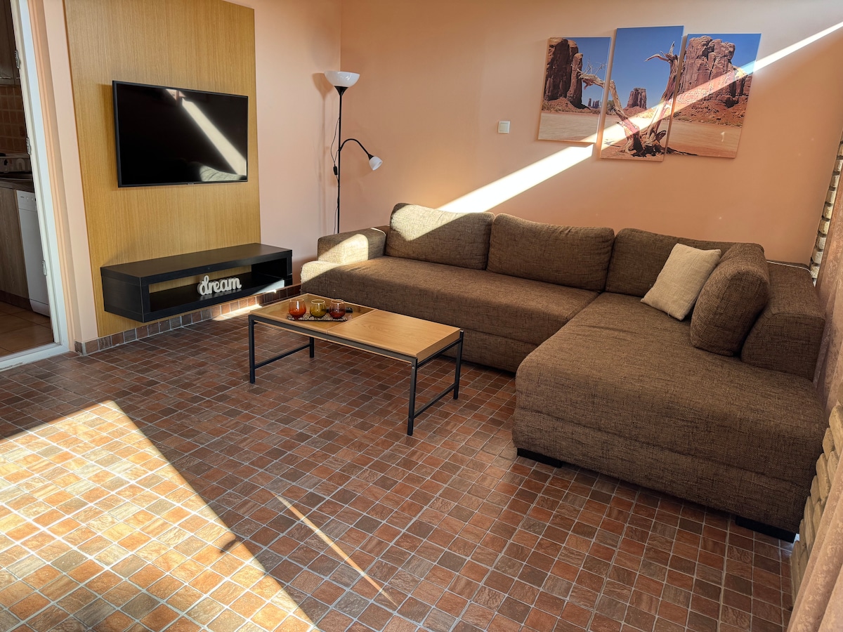 Welcome to NadaHome, a bright and spacious two-bedroom apartment surrounded by greenery in a small residential building. Enjoy free parking in the courtyard. Located less than 10 minutes from the city’s pedestrian zone and just minutes from the city hospital, the area is filled with charming historic buildings. The apartment features a fully equipped kitchen, a living room and a bedroom with a comfortable double bed and work desk. Stay connected with high-speed 400 Mbps fiber-optic internet.