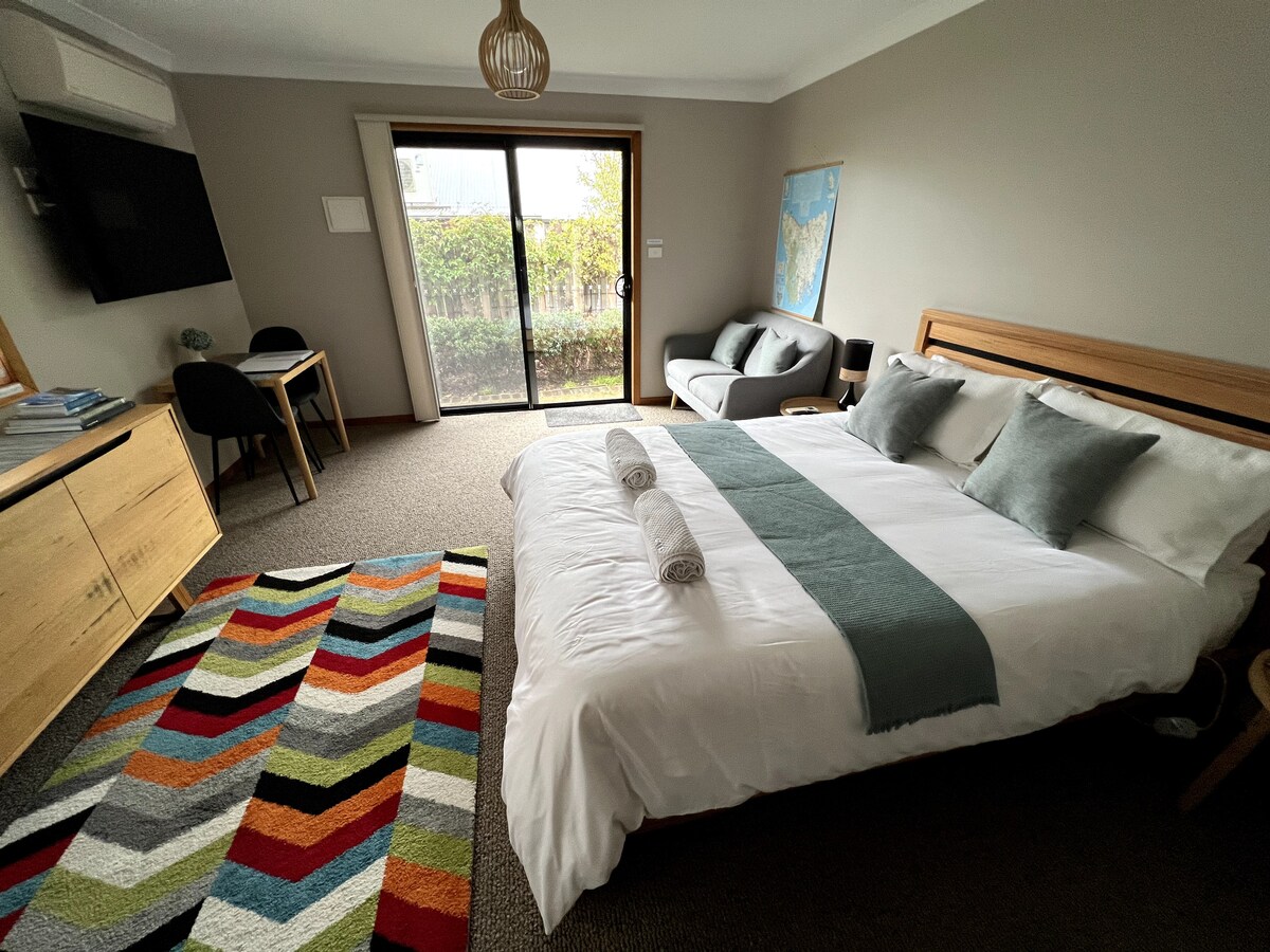 Spacious one bedroom fully self contained apartment featuring a stunning collection of Tasmanian photographs by Dennis Harding. Located in a peaceful country town close to local supermarket, bottle shop and hotel A ten minute drive to a laundromat as only a washing machine available no dryer Only a 15 minute drive to the Launceston airport. 1 hour drive from The Spirit Of Tasmania in Devonport. A two hour drive to Cradle Mountain