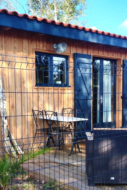 42 m2 house in a private property, a green space and terrace. Located 3 km from the lake and 10 km from the ocean. The place is ideal for a quiet holiday near nature. Bike path 800 m to the ocean or lake. Downtown 1.5/2 km away. The outdoor terrace with its pergola, barbecue, deck chairs, sun loungers, parasol, armchairs for pleasant and relaxing moments. Also suitable for 2 work colleagues, as sofa bed. Private parking inside the property.