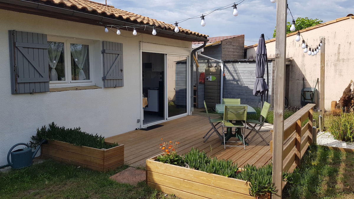 Welcome to Ginou's in ''lachanau''. My house is air-conditioned and comfortable. Ideally located near the lake and ocean. Depending on the season: swimming, water sports, walks in the forest, horseback riding, visit to the Médoc castles and also: naps in the sun or half shade, petanque and books available, children's games... what happiness! The house is fenced (parking for 2 vehicles). There is another accommodation but each has a garden and the private spaces are perfectly independent.