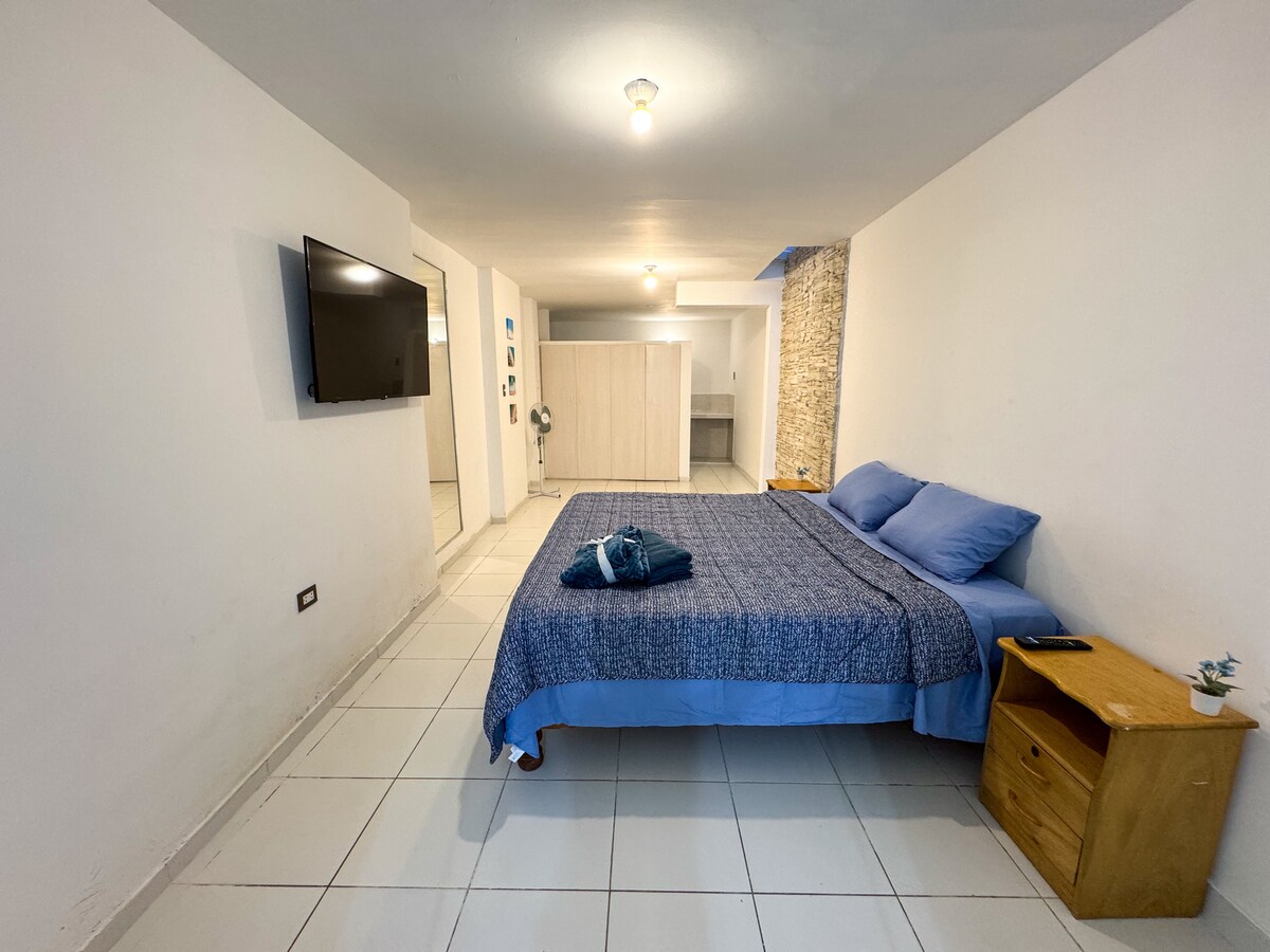 Our Minidepa is a studio space with a king-size bed, kitchen, private bathroom, and a private balcony. In addition, the building offers the following shared areas and services: a large terrace, a viewpoint, and a laundry room. We are centrally located in front of a park and 50 meters from the beach. We're here to make sure guests feel comfortable, services run smoothly, and maintenance is up to date.