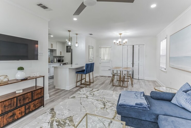 This beautifully appointed upper unit home is perfect for a family or friends coming to the city. Centrally located in a wonderful uptown neighborhood. Just a street car, or Uber/Lyft away from all the attractions This elegant home is perfect for extended stays in the city. It sleeps comfortably up to four and has all the amenities of home. Including TV's in each bedroom and in the living room! Formal Dinning Room eat in area in Kitchen and fully stocked Kitchen for any type of cook!