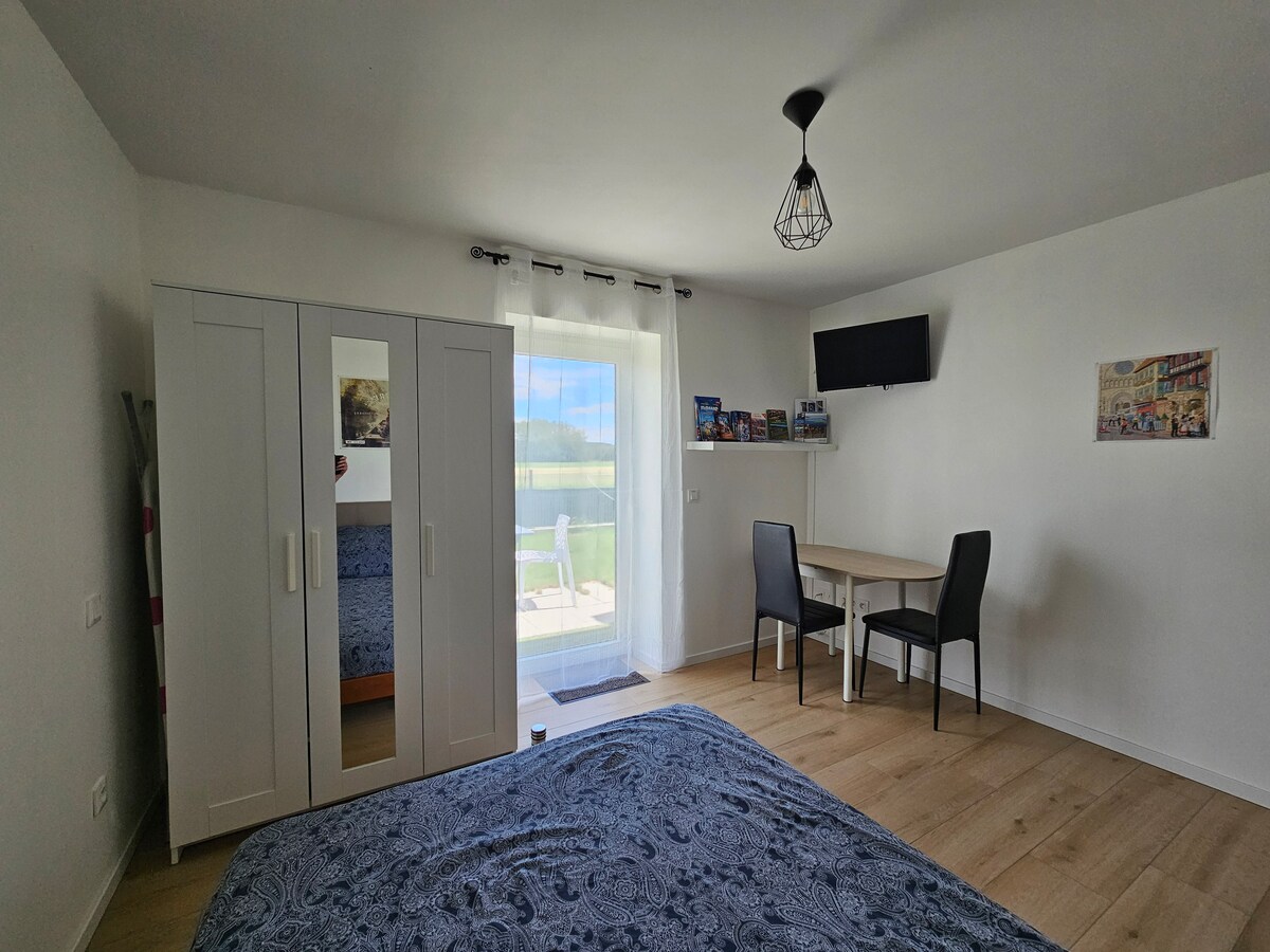 Stay in a quiet new studio, with views of nature, classified as 2** furnished tourist accommodation. The village of Osthouse is located in Central Alsace on the road and rail link between Strasbourg and Colmar and close to Germany and its famous amusement park Europa Park and Rulantica. The accommodation is accessible on one level with separate entrance, kitchenette, bathroom and separate terrace with views of nature. Bed and house linens as well as towels included.